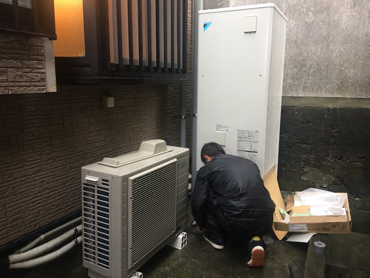 1.工事内容: 電気温水器からエコキュートへのお取替え工事。