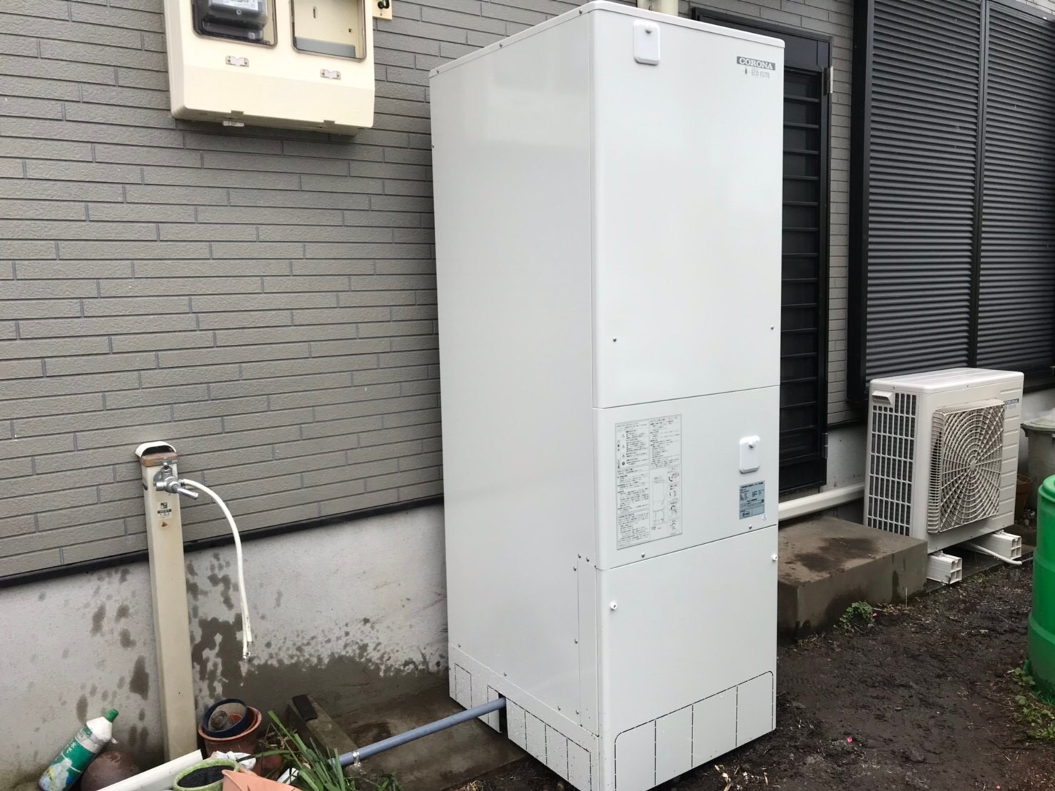 1.工事内容: エコキュートから新エコキュートへのお取替え工事。 2.お客様の声: 新型のエコキュートになってリモコンもとても見やすくなって、機能も増え便利になって大変気に入っています。有難うございました。 3.お客様担当より: 12年くらい前から太陽光とオール電化になされていて、この度エコキュートのお取替えをさせて頂きました。これからもアフターをしっかりさせて頂きます。